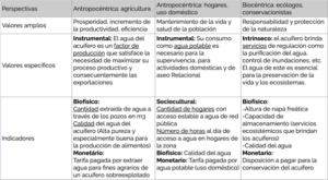 Tabla 1: Múltiples valoraciones de los recursos hídricos de los acuíferos de Ica-Villacurí