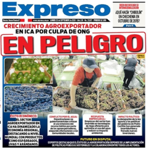 La relación entre los actores es compleja, puesto que parecen presentarse cierto tipo de alianzas entre el lobby agroexportador y parte de los medios de comunicación. Debido a titulares como “ONG ponen en peligro al sector agroexportador: actividad extractiva en Ica en alerta” (Palacios, 2024), que demonizan los intereses de una calidad de vida y la conservación del ambiente (Ver gráfico 5).